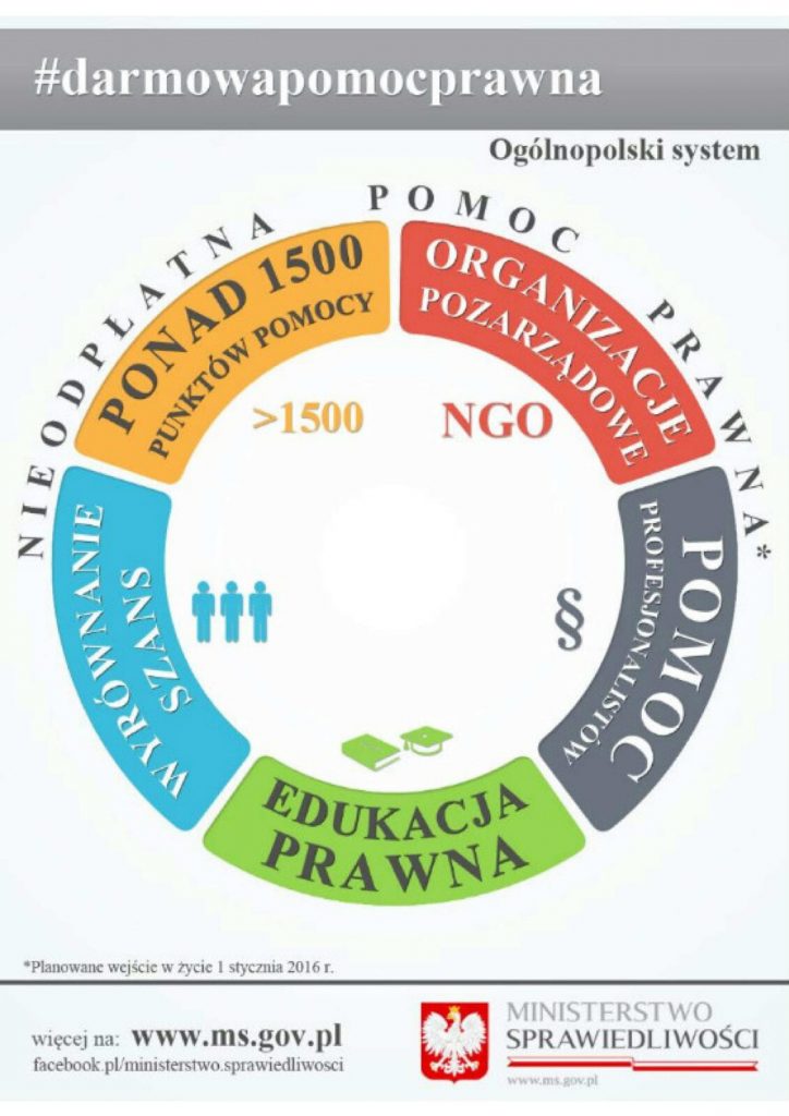 Od 1 stycznia 2019 roku, zgodnie z nowelizacją ustawy z dnia 5 sierpnia 2015 r. o nieodpłatnej pomocy prawnej , nieodpłatnym poradnictwie obywatelskim oraz edukacji prawnej ( Dz. U. z 2017 r. poz. 2030 z późn.zm.), usługi w zakresie nieodpłatnej pomocy prawnej i nieodpłatnego poradnictwa obywatelskiego będą świadczone każdej osobie fizycznej, która złoży oświadczenie, że nie jest w stanie ponieść kosztów odpłatnej pomocy prawnej. Oświadczenie składa się osobie udzielającej nieodpłatnej pomocy prawnej lub świadczącej nieodpłatne poradnictwo obywatelskie.