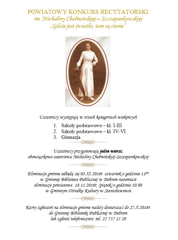 Gminny Ośrodek Kultury w Dobrem zaprasza na Konkurs Recytatorski.