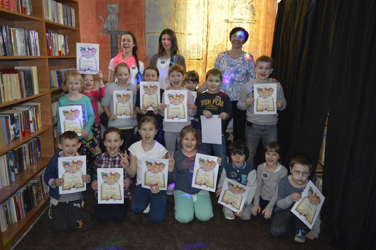 I gdzie ten kuferek? Pytali uczestnicy zajęć, które odbyły się w pierwszą środę ferii. Właśnie! Kuferek był tak wypełniony magicznymi strojami, że nawet nie było go widać! Cała zawartość czarodziejskiej skrzyni była do dyspozycji najmłodszych. Każdy mógł zamienić się w dowolną postać, by potem zaprezentować się w wielkim pokazie bajkowych stylizacji. Były księżniczki, panny młode, kopciuszek, królowa, wilk, duch i inne potwory. Ale to nie koniec przemian, maluchy jeszcze wielokrotnie wcielały się w różnych bohaterów podczas kalambur, czy bajkowych zgadywanek. Na koniec nasze grzeczne dzieci przemieniły się w straszliwe, najprawdziwsze zombie, ale spokojnie… tylko na chwilkę. Ostatecznie wszyscy uczestnicy powrócili do swojej uśmiechniętej, dziecięcej postaci.