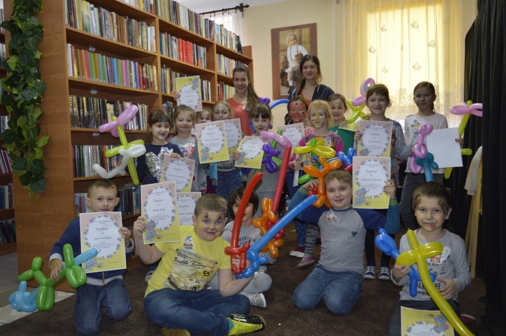 Grupa piętnaściorga dzieci z terenu Gminy Dobre zgromadziła się w Gminnej Bibliotece Publicznej aby wspólnie bawić się wraz z animatorkami.