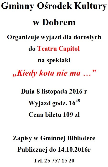 Wyjazd na spektakl „Kiedy kota nie ma…”