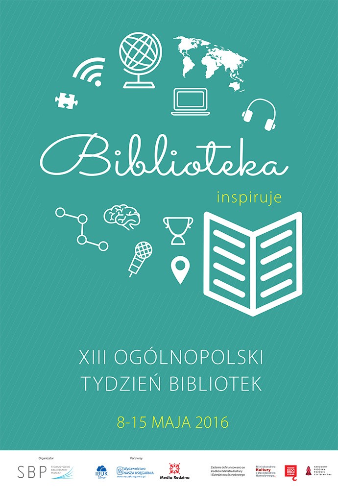 Po raz jedenasty Stowarzyszenie Bibliotekarzy Polskich organizuje, w dniach 8 – 15 maja 2016 r., „Tydzień Bibliotek” – program promocji czytelnictwa i bibliotek. Ma on na celu podkreślanie roli czytania w poprawie jakości życia, edukacji oraz zwiększanie prestiżu zawodu bibliotekarza i zainteresowania książką szerokich kręgów społeczeństwa. Tegoroczna edycja „Tygodnia Bibliotek” odbywa się pod hasłem: „Biblioteka inspiruje”.