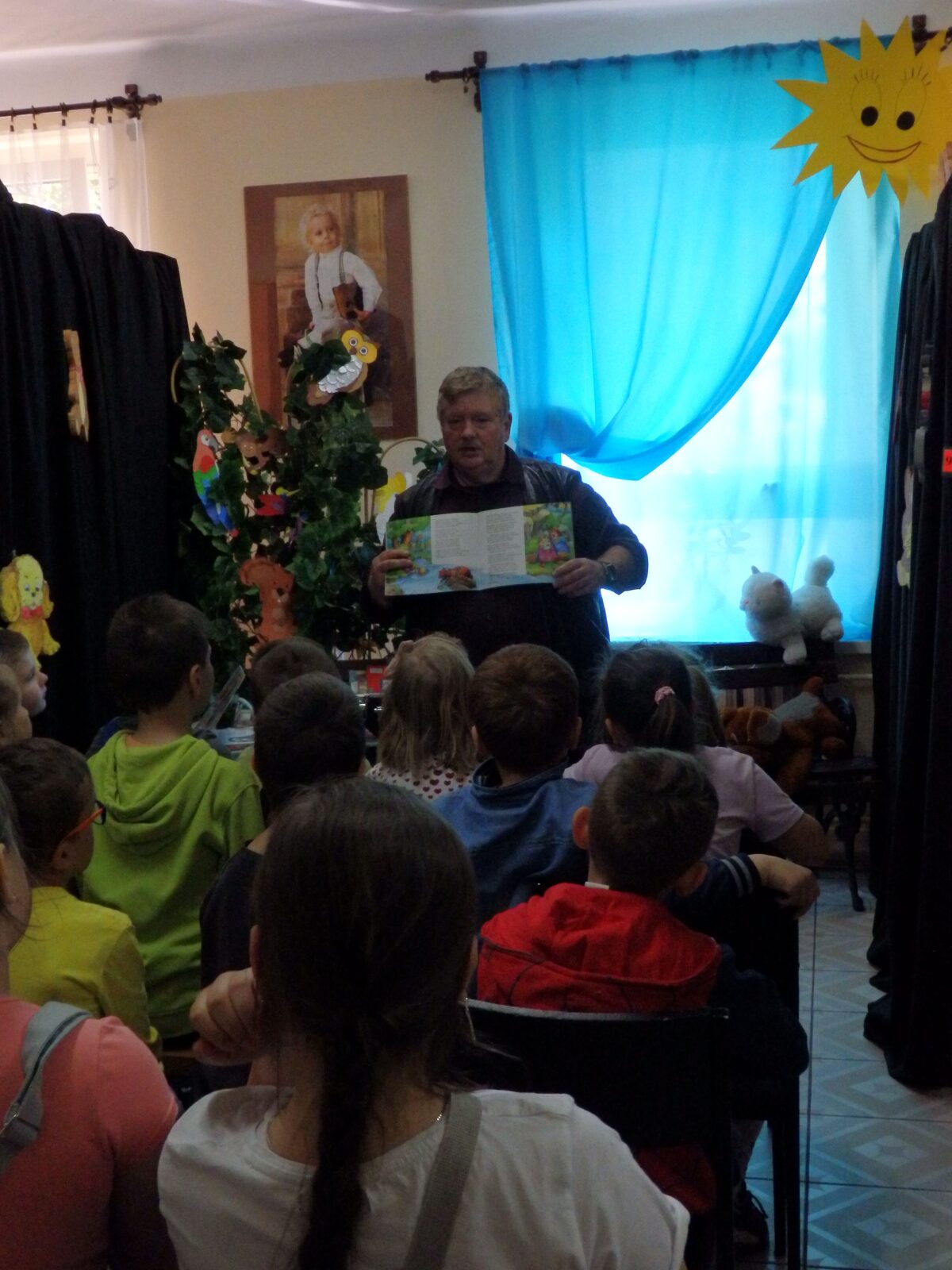 Podczas spotkania dzieci chętnie słuchały jak powstaje książka, okładka, brały udział w konkursach, jak również głośno czytały wiersze autora. Po spotkaniu można było zakupić książeczki i otrzymać autograf pisarza.