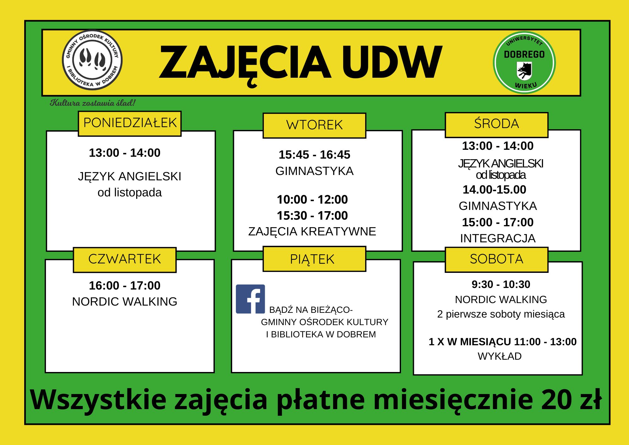 Udostępniamy również rozkład zajęć cyklicznych w tygodniu.