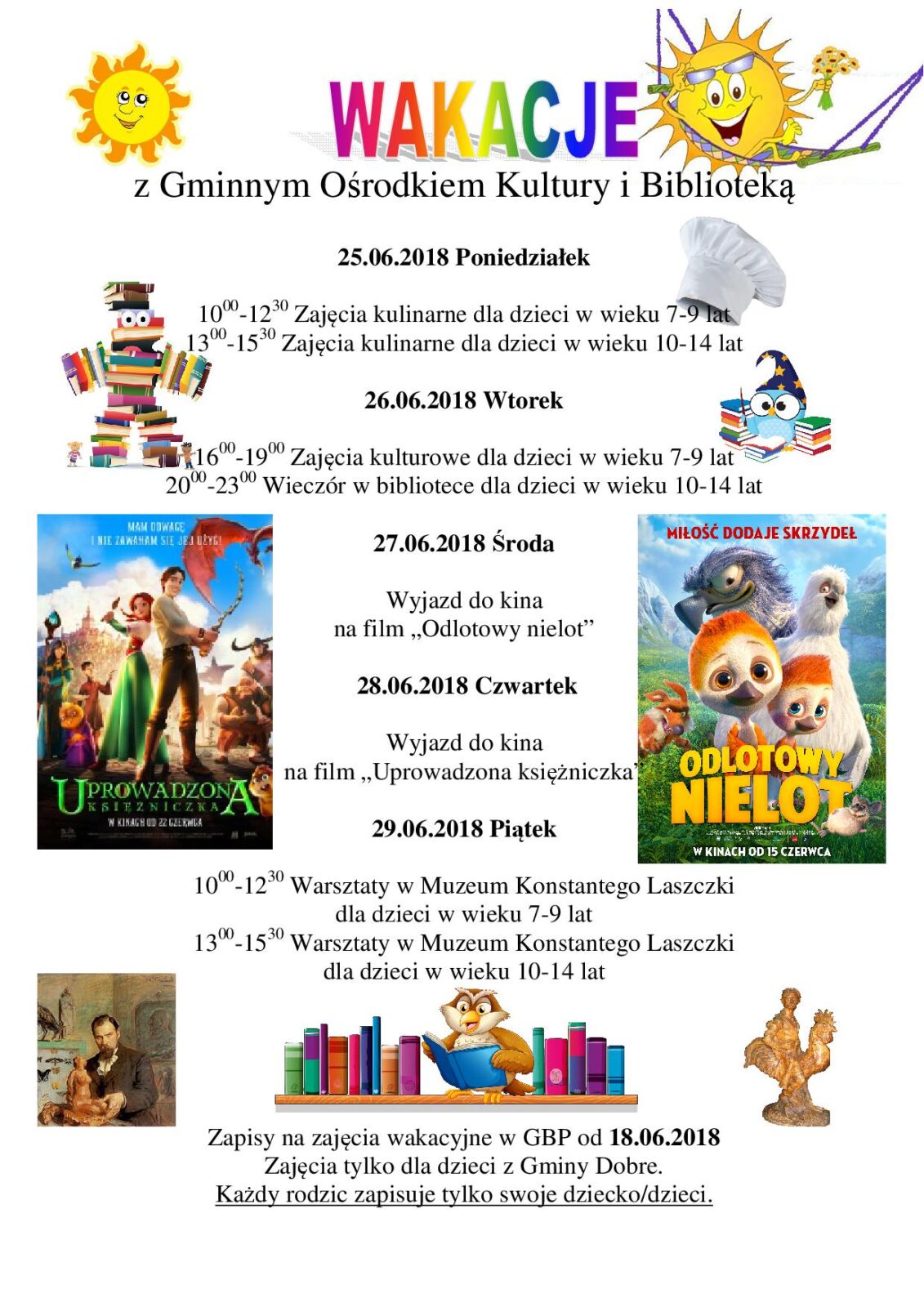 Zapisy na zajęcia wakacyjne w GOK i Bibliotece